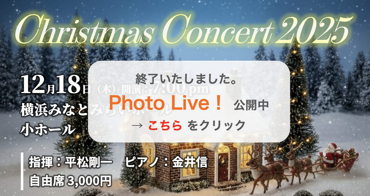 クリスマスコンサート終了いたしました。ご来場いただきました皆様、ありがとうございました。